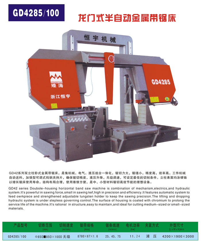 GD4285/100龍門式半自動(dòng)金屬帶鋸床