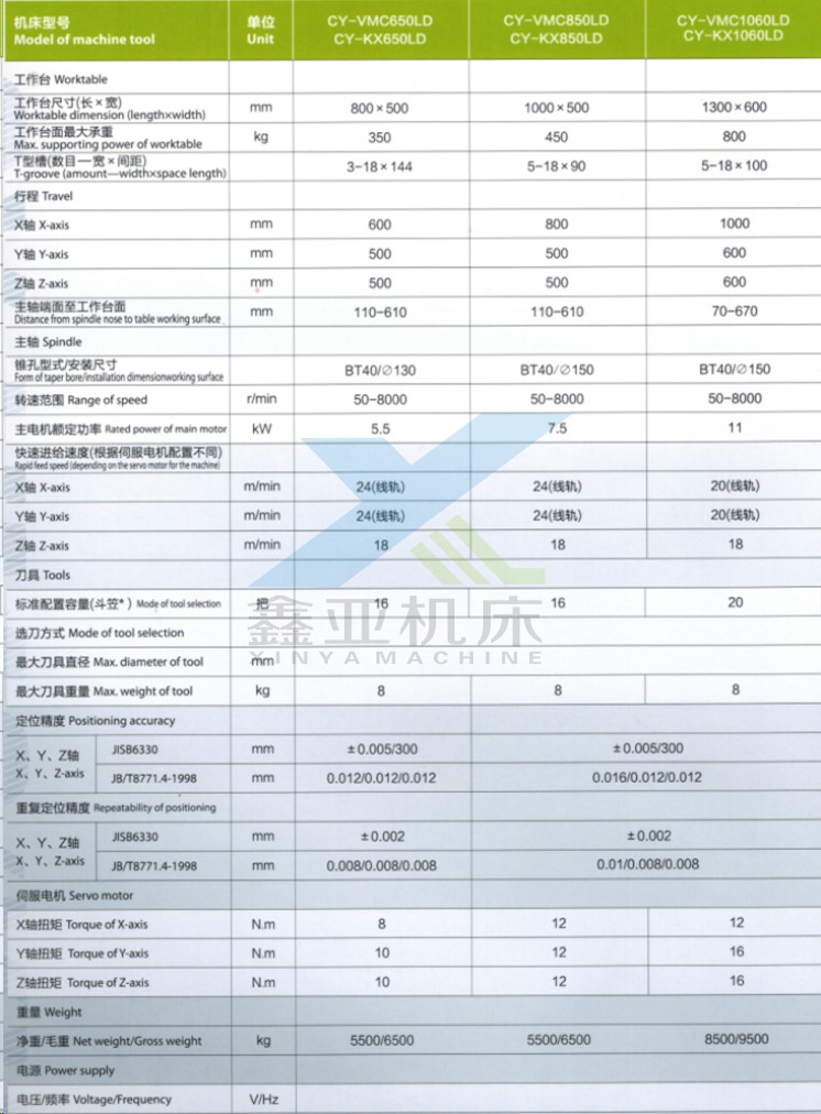 CY-VMC650LD/VMC850LD/VMC1060LD立式加工中心
