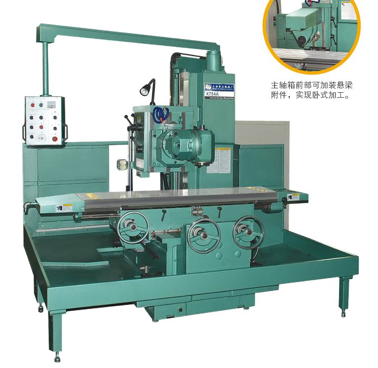 X754 采用模塊化設計,機床具有多種形式,有端面銑,立銑、臥銑、萬能銑等;其主要鑄件都采用高合金鑄鐵,工作臺的工作面和導軌都經過熱處理淬硬。