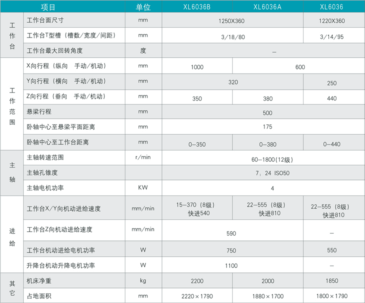 XL6036B/XL6036A/XL6036臥式升降臺(tái)銑床